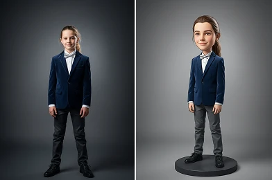Our AI processes your image, adding depth and perspective to generate a lifelike 3D version.
