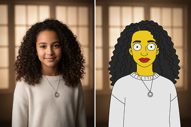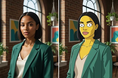 AI Simpsons Character Generator changes your photo into a Simpsons-style cartoon. Faces get yellow skin, simple shapes, and classic cartoon details that match the show’s look.